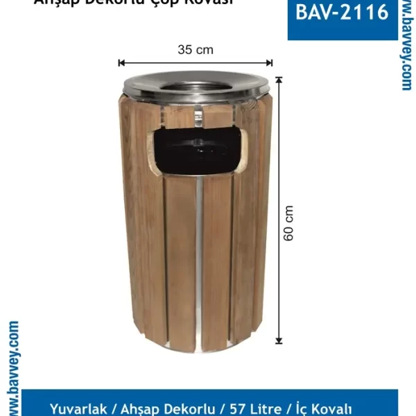 Ahşap Dekorlu Küllüklü 35 Litre Çöp Kovası (BAV-2115)