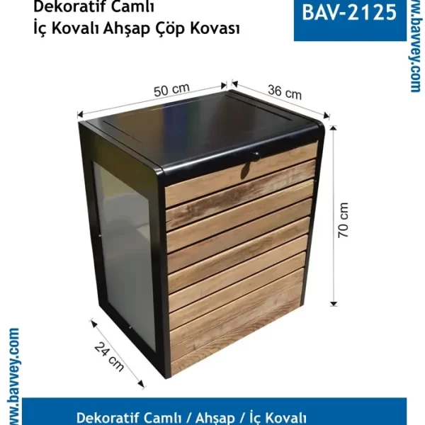 Ahşap Dekorlu Camlı Çöp Kovası (BAV-2125)