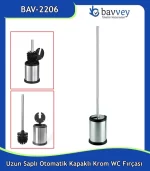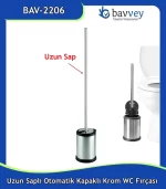 Krom Otomatik Kapaklı Uzun Saplı Klozet Tuvalet Fırçası BAV-2206