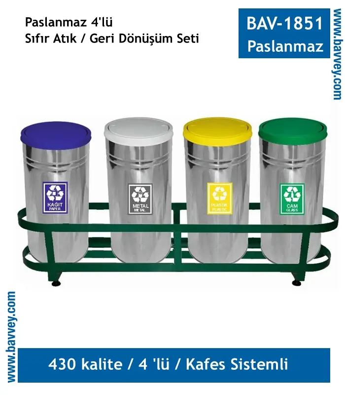 Paslanmaz Geri Dönüşüm Seti 4’lü Kafesli BAV-1851