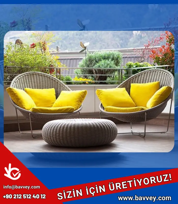 NOT: Piyasada makrome ip v.b. iplerden olan benzer ürünler mevcut fakat bu ipler sentetik ipler gibi uzun ömürlü ve dayanıklı olmadıklarından üretimimizde sentetik rattan iplikler kullanmaktayız.